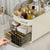 Keep your beauty essentials neatly displayed with this Elegant Makeup Organizer featuring a transparent cover. Its stylish design protects your products from dust while offering easy visibility and convenient access.